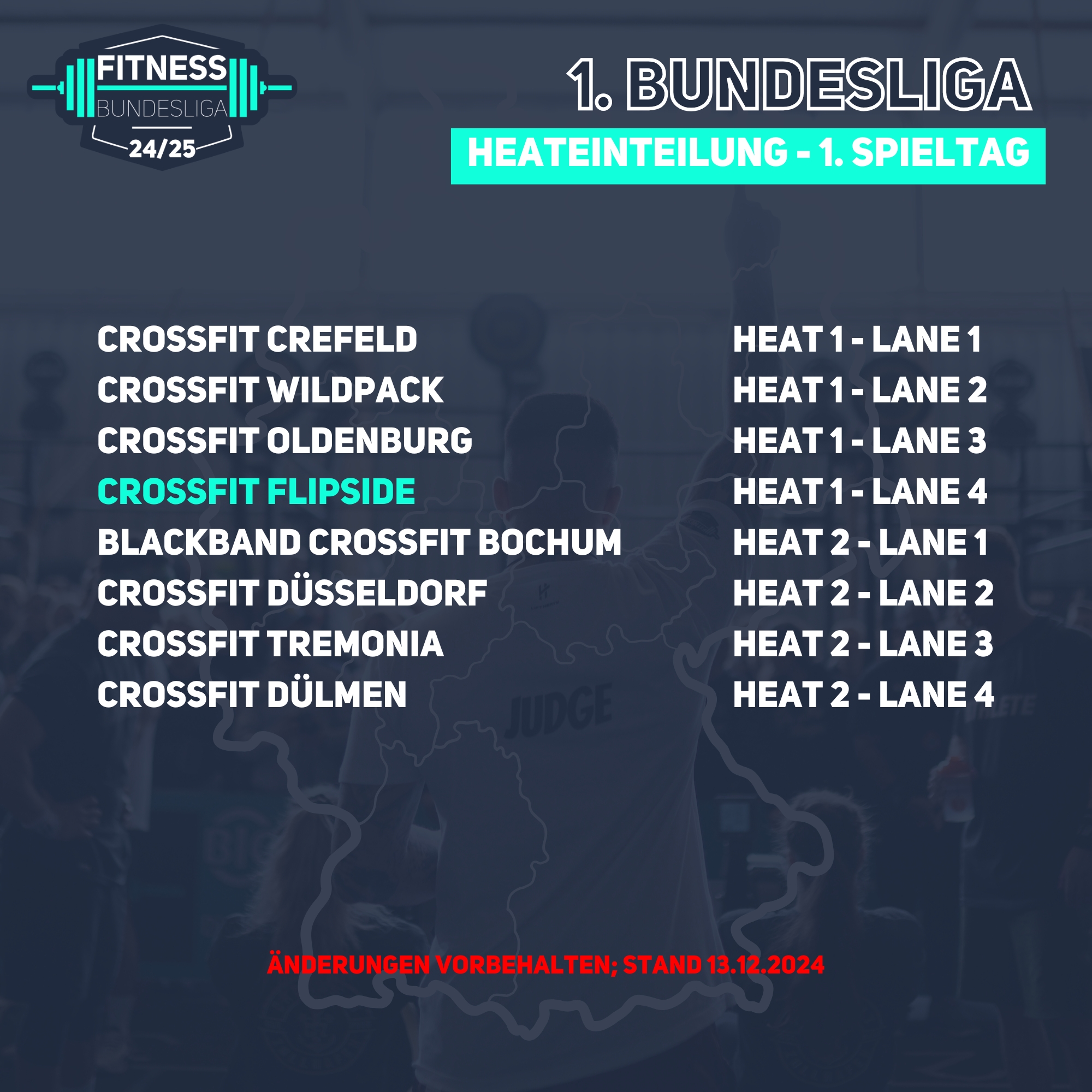 1. Spieltag der 1. Bundesliga in der Saison 2024/25 – Wir sind live vor Ort bei CrossFit Flipside (Frankfurter Weg 34, 33106 Paderborn) und übertragen das Event im Stream. Freut euch auf ein packendes Duell der 8 Teams und verfolgt den Spieltag in der Liveübertragung oder vor Ort in der ersten Reihe. Bestzeiten und Höchstleistungen sind garantiert im Kampf um einen Spitzenplatz im Deutschland-Ranking. Denn auch hier haben noch weiter Erstligateams die Chance auf den Einzug in die Play-Offs. Wer löst ein Tickets für die Play-Offs?